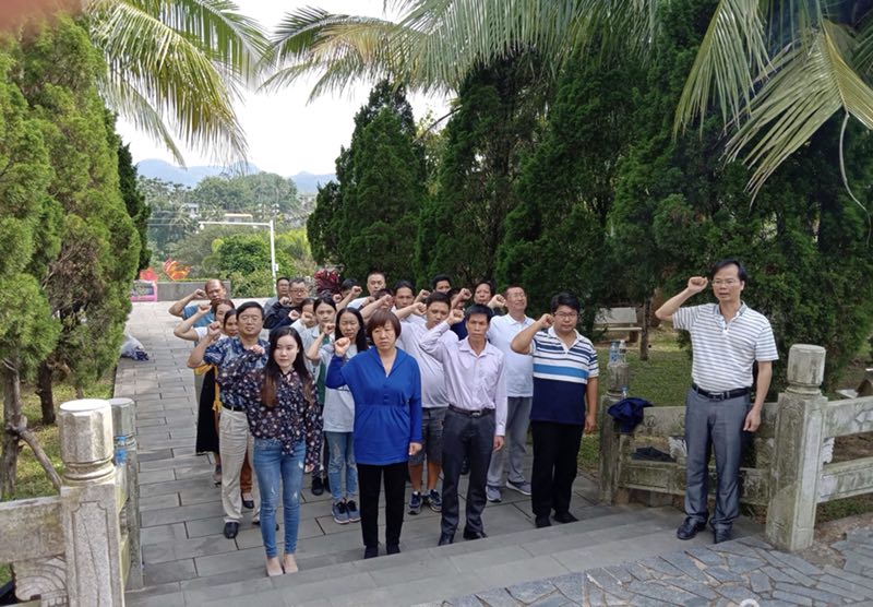11月24日上午,生态环境公司党委和保国村党支部共25名党员到定安母瑞山革命根据地纪念园开展“爱国主义教育”主题党日活动,党员们在烈士纪念碑前向革命烈士默哀、躹躬、重温入党誓言。党员们通过听讲解、参观等方式回顾革命历史,缅怀革命先烈。一幅幅图片,一段段文字,一件件纪念物真实地再现了老一辈革命家的战斗历程,八十岁高龄的王学广馆长的激情讲座,让大家了解了琼崖革命二十三年红旗不倒的光辉历程和琼崖共产党人坚定的理想信念和顽强不屈的革命斗争精神,大家的心灵再次受到震撼。